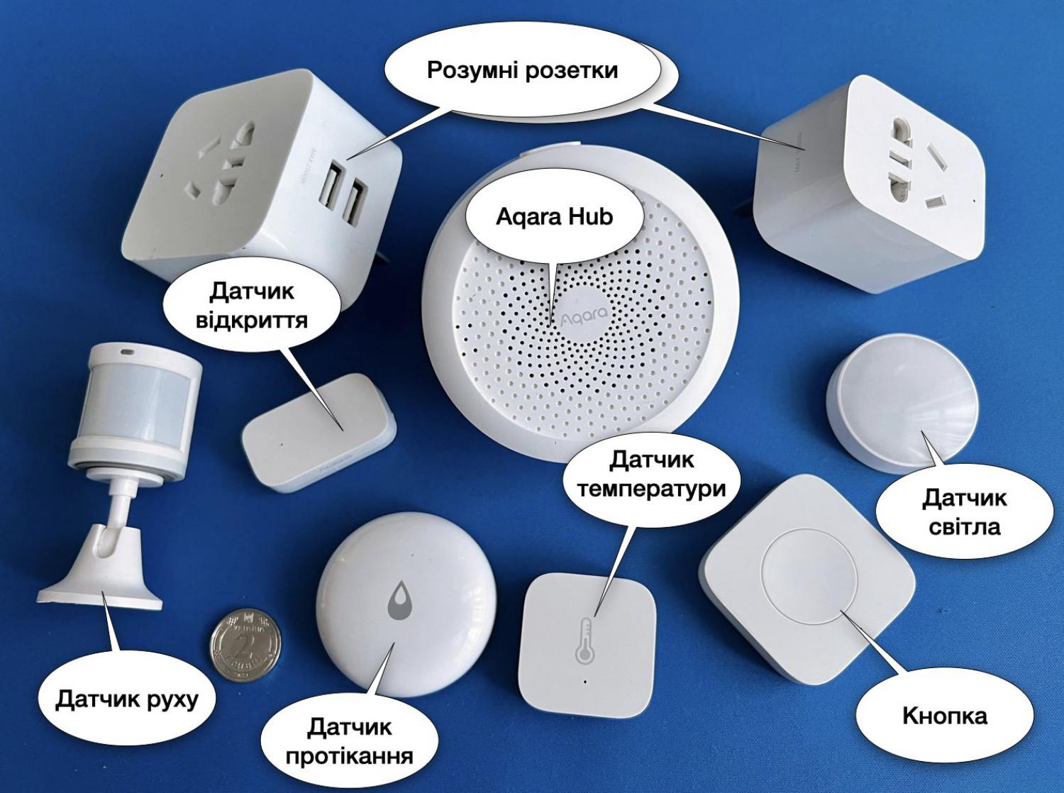 Реальність: тут варто нагадати розділ пристроїв на сенсорні та виконавчі. Сенсорні, такі як датчик температури/вологості (фото 3 в галереї вище) чи датчик протікання, працюють компактної батарейки типу CR2032 ("таблетка") до 2 (!) років завдяки використанню спеціалізованих протоколів обміну даних (ZigBee, BLE, zWave). Виконавчі пристрої, наприклад термоголовка радіатора або мотор від штори, дійсно потребують зарядки чи заміни батарей приблизно раз на півроку, що погодьтесь зовсім не велика плата за гнучкість рішення та відсутність кабелів на стінах.